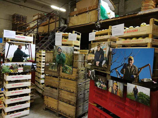 A fine novembre, in occasione della Festa degli Alberi 2018, l'esposizione nel nostro magazzino, in mezzo a cachi, kiwi e mele in lavorazione e pronti per la vendita.