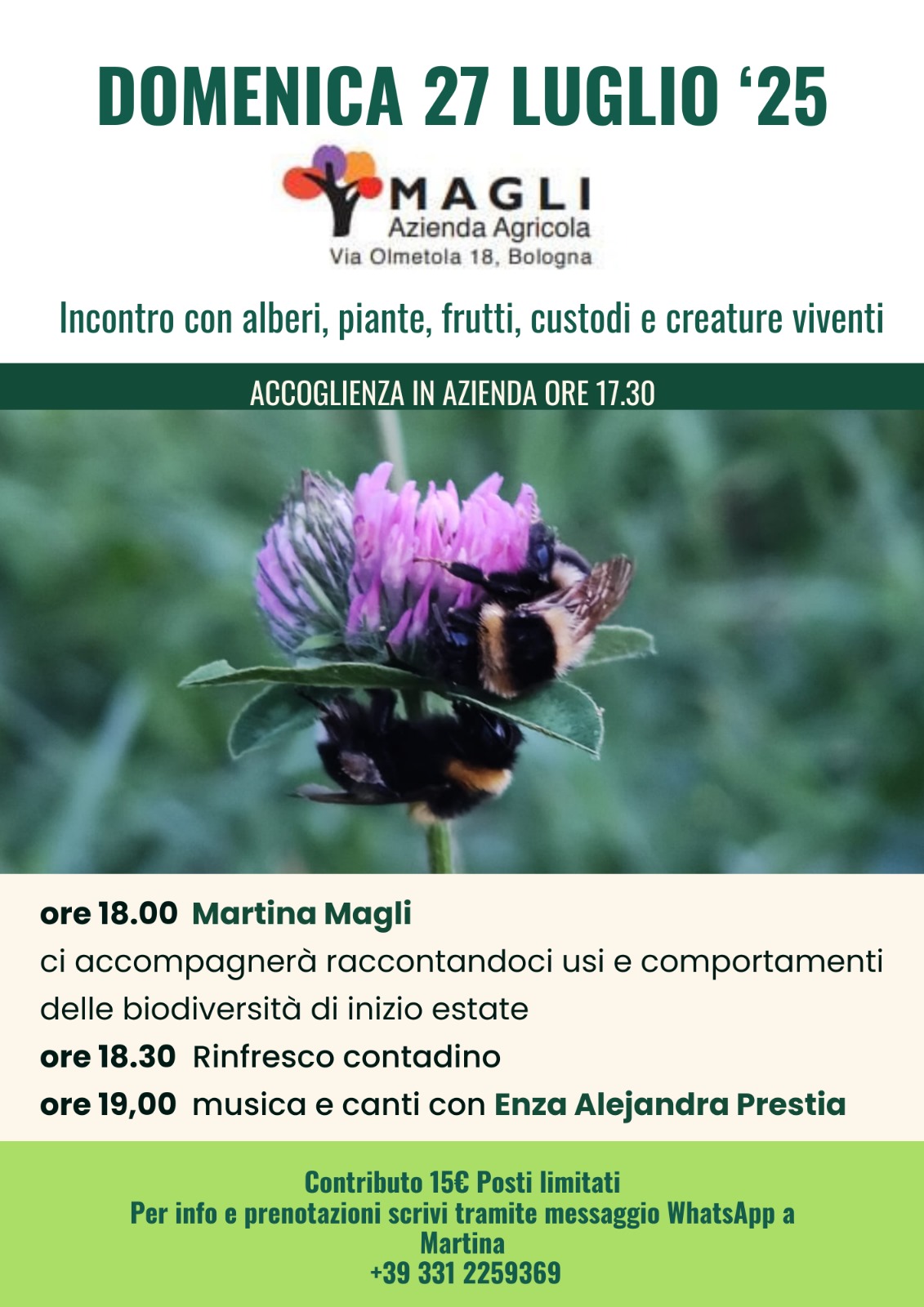 La camminata incontro con Martina Magli, a seguire un rinfresco contadino e spazio a suoni e canti in natura con Enza Alejandra Prestia.